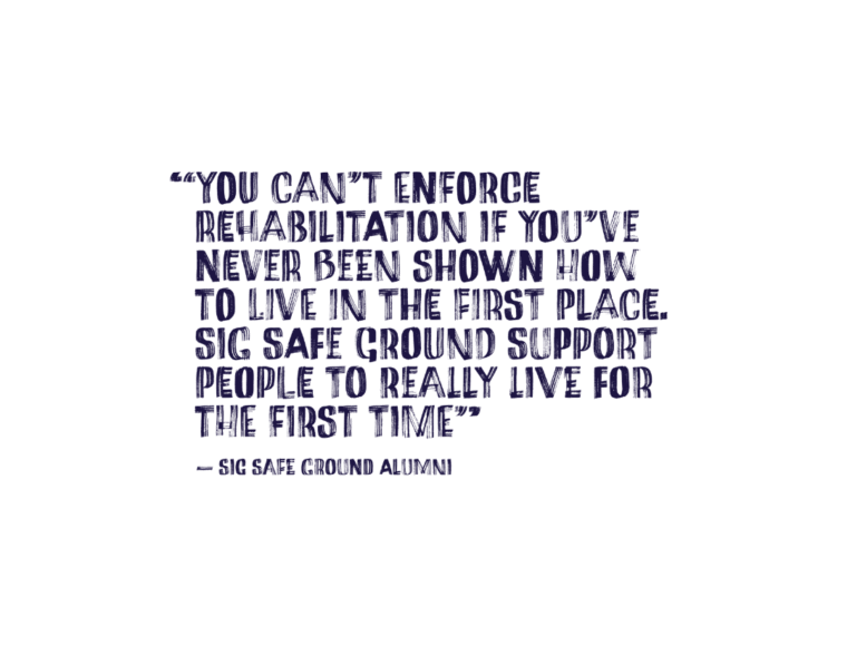 One thing I’ve learned through this work is that real change only happens when we meet people exactly where they are, without shame, without judgment, and without the expectation that change should look neat or linear. The men and women we work alongside need compassion, creativity and community to navigate change, and they also need to feel genuine excitement about their futures. At SIG Safe Ground, we believe everyone deserves that. When we hold space for honesty, connection and imagination, people begin to see what’s possible for themselves and their families. And that is the heart of our work.
